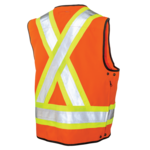 Equip yourself with the ultimate work vest designed for site managers, featuring a plethora of functional pockets, including one large enough for a tablet. Crafted from durable polyester twill, this vest ensures visibility with 3M™ Scotchlite™ 2″ reflective material and a snap front closure for easy wear. It includes an upper chest patch pocket with security tabs, 2 lower double patch pockets with bellows and security tabs, and a large rear zippered pouch pocket for ample storage. Additional features like a safety harness opening at the center back, adjustable side snaps for seasonal fit adjustment, mesh side vents, grommets for tape feed and hooks, and inside pockets enhance versatility and convenience.